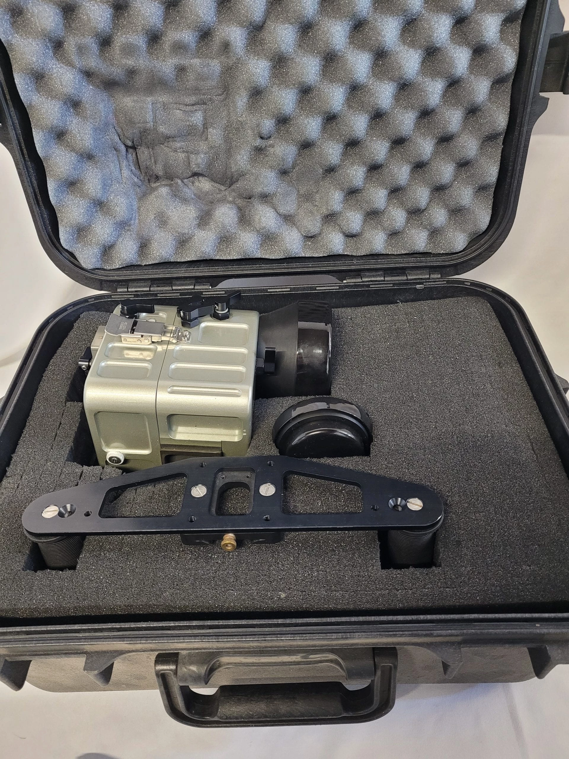 AS IS Pre-owned Doskocil Underwater Video Housing by Gates Underwater Products, w/Air Tight Hard Case. The housing has not been tested because the 9 volt battery connector is not connected to the terminal and is lose inside the housing. For that reason, this listing is for the hard airtight case and “parts only” for the housing. The case measures 22″ x 18″ x 10″.