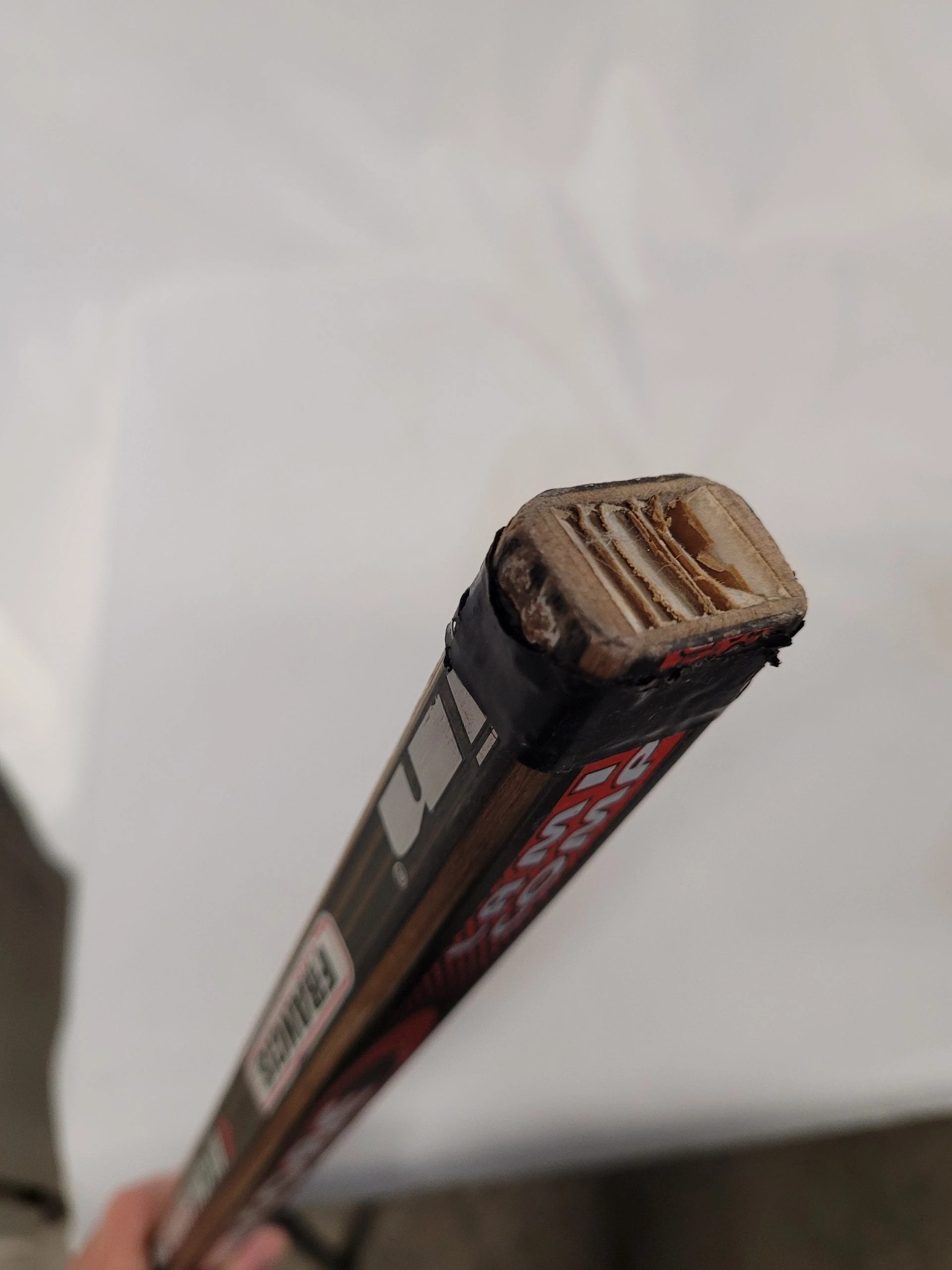 Pre-owned Franklin 6050 Wooden Hockey Stick 54″. The hockey stick is pretty roughed up from lots of action (please see pics).