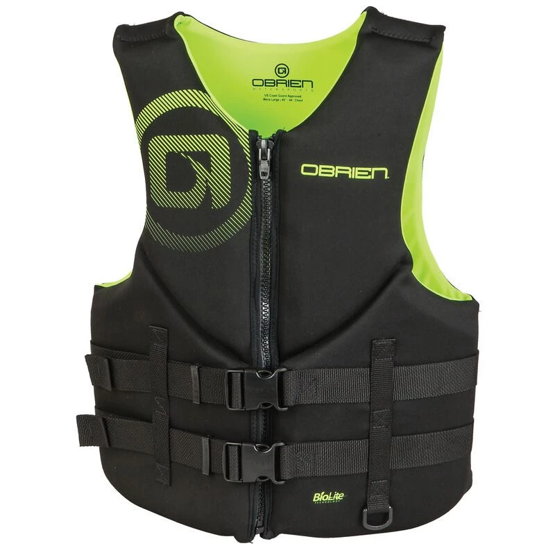 Harmonized U.S. Coast Guard/Transport Canada Approved. The O’Brien Men’s Traditional Vest is a sleek, comfortable, eco-friendly life jacket that will have you loving your time on the water. The Bio Lite material adds breathability for faster drying and makes it lighter and more environmentally friendly than traditional neoprene, while still providing exceptional comfort. The segmented panels with the front hinge and the wide armholes allow the life jacket to move with you and minimize any hindrance in range of motion. The full front zip closure and two adjustable belts make it easy to dial in that snug fit to keep you safe and secure on the water.