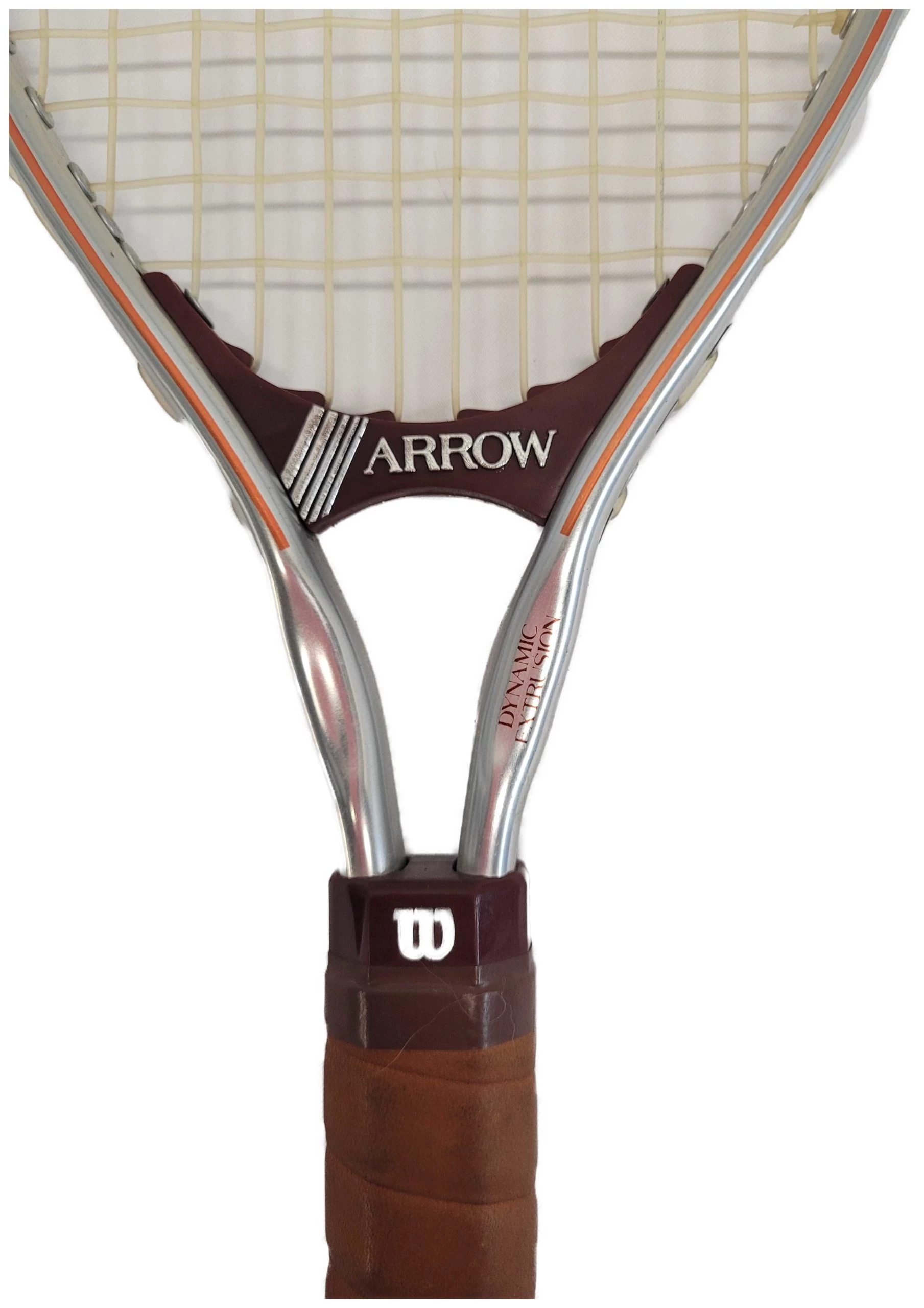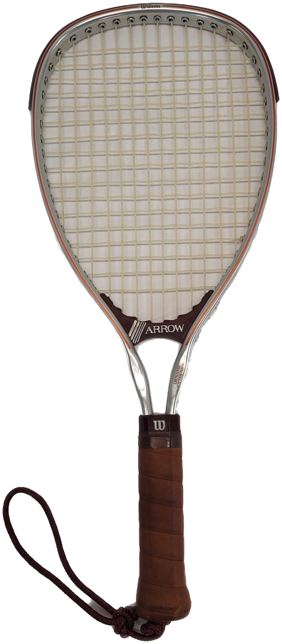 Pre-owned Wilson Arrow Racquetball Racquet, 3 7/8 Grip in very good condition. The racket comes with a head cover.